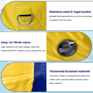 When not in use, deflate the blob, rinse off any dirt or algae, and store it in a shaded, dry location. The PVC fabric is UV-resistant, but long-term sunlight exposure can fade colors.
