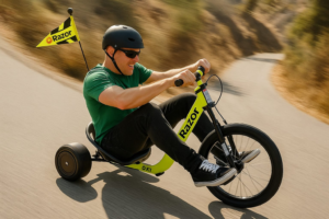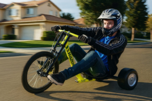 The Razor DXT Drift Trike is one of the wildest ride-on toys Razor has ever released — and it’s not even electric. It’s a gravity-powered drifting monster designed for teens and adults who want real sideways action, not just casual cruising. The DXT isn’t a quiet, relaxing ride around the neighborhood. It’s made to slide, whip, swing out a huge drift, and make you feel like a kid again the moment those rear wheels break traction.